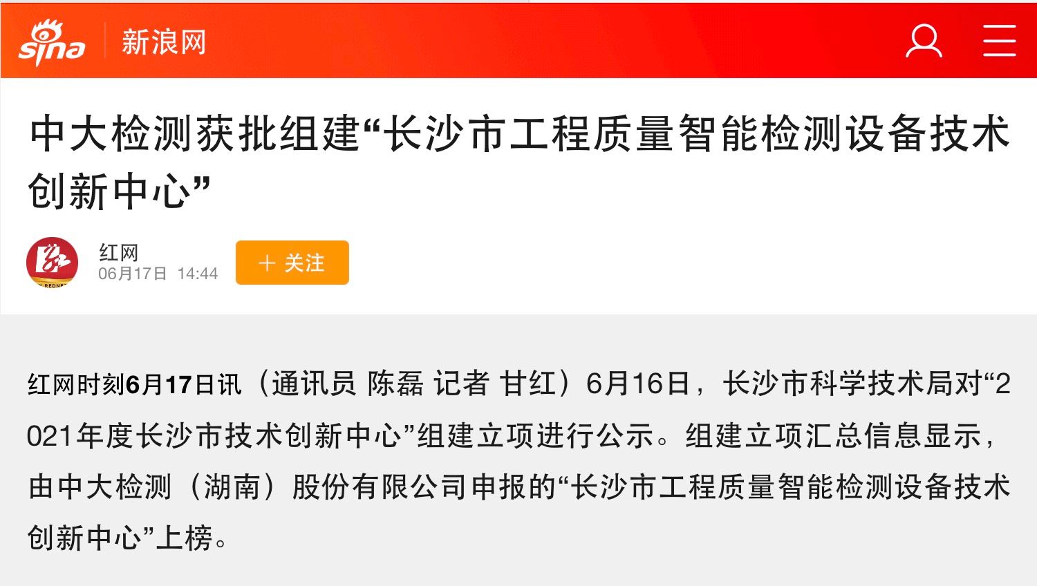 红网:中大检测获批组建“长沙市工程质量智能检测设备技术创新中心”