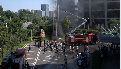 “演习开始!”随着吴总一声令下,刺耳的警报声响彻天空,内部狼烟四起,工作组成员各就各位,按科学程序进行疏散工作。只见三分钟内,从集团15楼至1楼,在司工作两百余名员工,均以湿毛巾捂鼻,从消防楼梯飞奔鱼贯而下,像一道急促的细流,汇聚于总部前坪之中,整齐有序之势,惹得消防队员连声夸赞:“中大是我这么多年见过的员工身体素质最好的企业!”