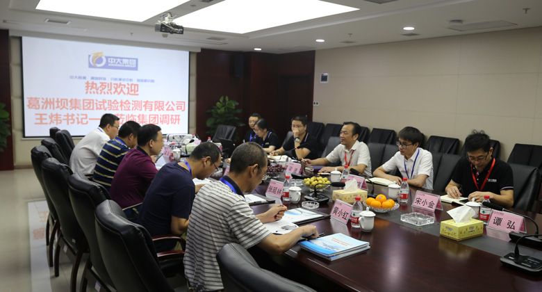 8月15日上午,葛洲坝集团试验检测有限公司党总支书记王炜一行莅临集团考察,中大检测集团执行总裁梁波携经营中心、技术中心、质安中心、水利事业部、公路事业部、材料事业部、岩土事业部等相关负责人接待了考察团一行。