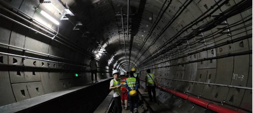 与此有相同感触的还有检测公司隧道部和结构部的同事,让他们印象比较深刻的事就在眼前。2020年6月24日,这天距离地铁5号线开通还有4天,隧道部对地铁5号线水渡河站~白茅铺站进行了盾构区间管片无损检测。这次检测对他们来说是一个不小的挑战——一天时间,2个区间,时间减半,工作量不变。方啸天和李超鹏想着通车就在眼前,硬是轮流推着检测梯,在闷热的隧道里不知道走了多远……