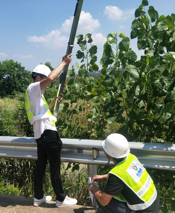 太阳把护栏晒得滚烫,大家一心扑在工作中,汗水和晒得又黑又红的皮肤,由于作业点在山区,每个作业点距离远,为了赶时间中午也只是吃完饭,便又匆匆赶往下个地点,工作一直到十九点四十分结束,在路上我们笑着数着不知什么时候被咬的大包。第二天的钻心取样,大家齐心协力,一起把钻心抬上抬下,真的是深刻而又充实的外检。