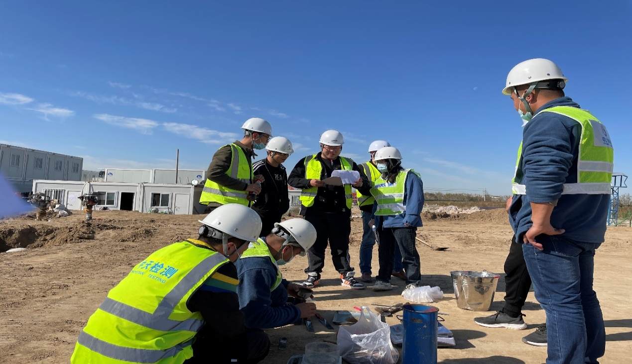 早上9:00,大家备好安全帽、反光衣等整装待发,于中天检测公司门口统一乘车,共同抵达比武场地——工程项目施工现场。