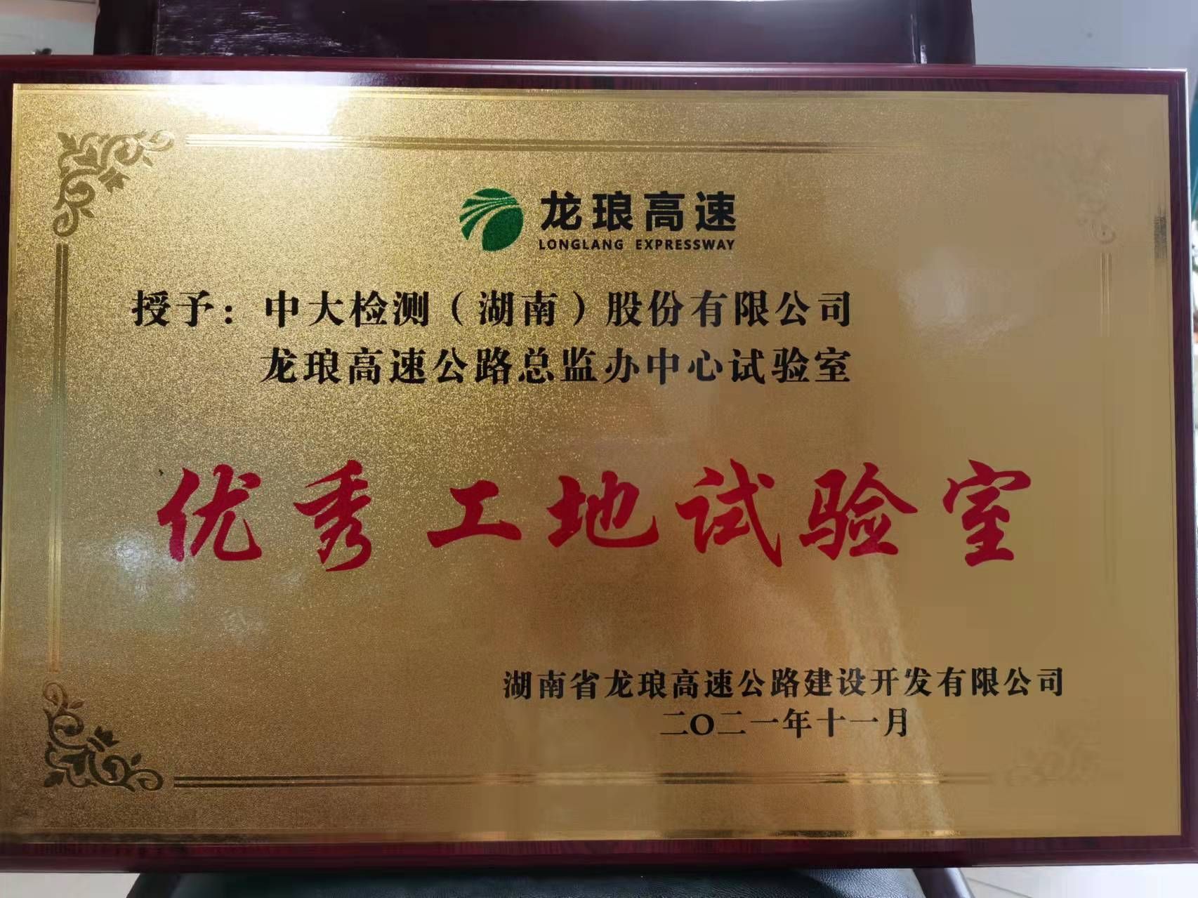 近日,公司龙琅项目收到客户单位湖南省龙琅高速公路开发建设有限公司优秀工地实验室和团队的表彰。