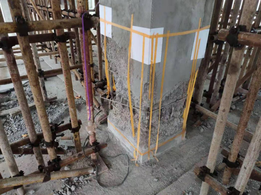 记得,现场柱混凝土已压碎、钢筋已出现状况,情况确实较为危急。根据鉴定结论及现场情况,公司联合小组紧急出具抢险应急预案并同步跟进加固方案,现场搭设临时支撑,避免次生灾害发生。当时恰逢元旦假期的放假期间,技术负责人加班加点对出现险情的结构构件进行加固设计,带着图纸奔赴现场,与项目委托方、监理方及相关职能部门沟通加固方案的实施细节(柱采用砼置换法加固),加固方案通过各方认可后,紧急组织专业的劳务施工队实施加固作业。施工期间,项目所在地气温低至零度以下,我方的现场管理人员及作业班组坚守岗位,在元月10日晚上浇筑完高强灌浆料,待拆模后进行了养护,后项目顺利完工。
