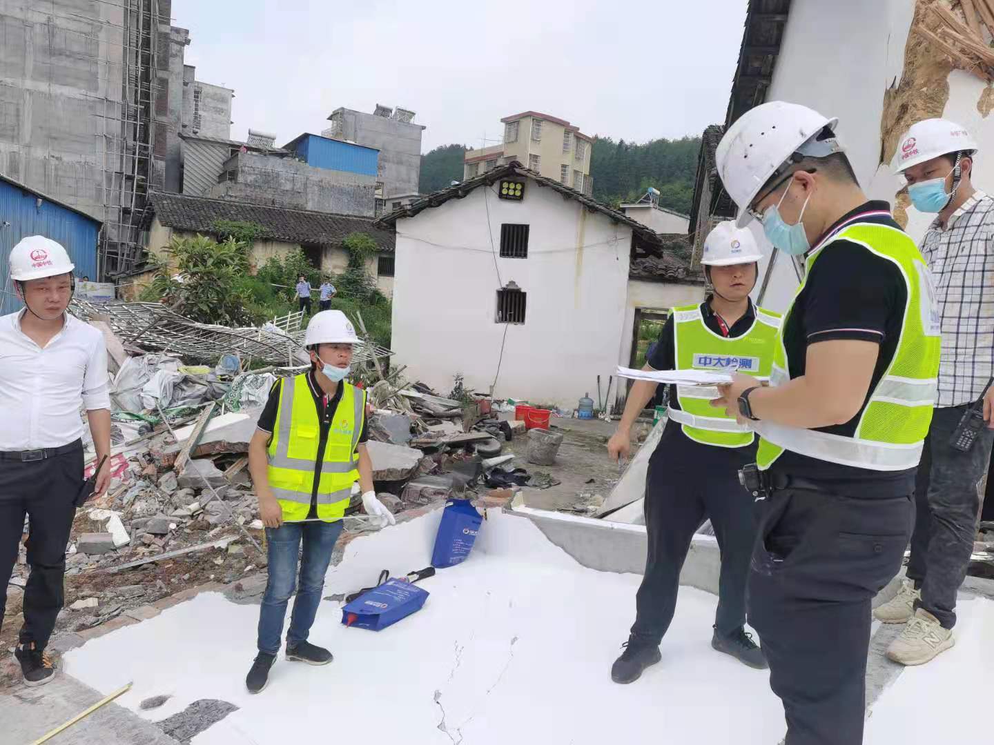 6月19日中午12点37分,湖南省汝城县卢阳镇云善村云头路一自建房发生倾覆垮塌。当日晚23点,公司接到汝城县人民政府对周边房屋进行详细技术调查的委托。中大检测总裁梁波、总经理孙圣第一时间部署,要求公司全力以赴支持事故现场及周边的隐患排查工作。中大检测迅速组织力量,星夜赶赴现场,对已垮塌事故房屋进行了详细技术调查,并对事故周边200m范围内农村房屋进行了结构安全隐患排查。