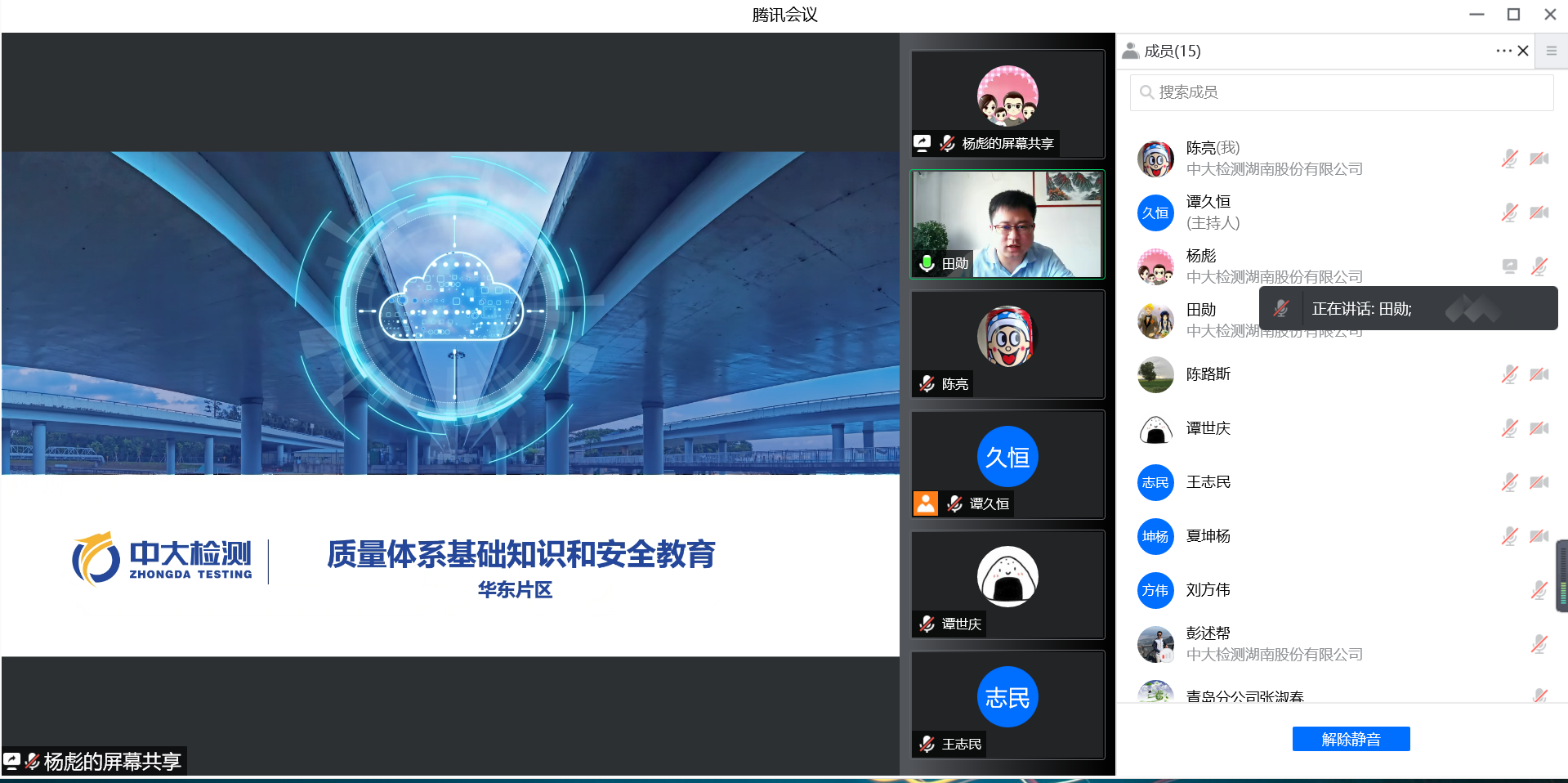 座谈会上针对片区质安工作作出若干要求,同时要求区域内各分公司积极响应总公司号召,要践行“坚持质量第一,树立公信力,提高人民生活品质”企业使命,坚持“生命至上、安全至上”企业安全观,坚守“质量锻造中大品牌,品牌树立行业标杆”的企业质量观,强化红线意识和底线思维,独立、公正、准确地开展检验检测活动。