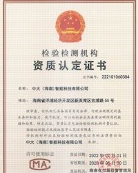 近日,中大(海南)智能科技有限公司通过检验检测机构(CMA)资质认定评审,获得海南省市场监督管理局颁发的检验检测机构(CMA)资质认定证书。